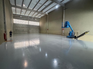Dispõe de pé-direito de 10 metros e piso de alta resistência, adequado para diversas atividades operacionais.